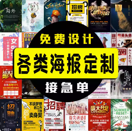 海报设计制作广告海报定制广告布贴纸写真宣传画印刷招聘墙贴写真